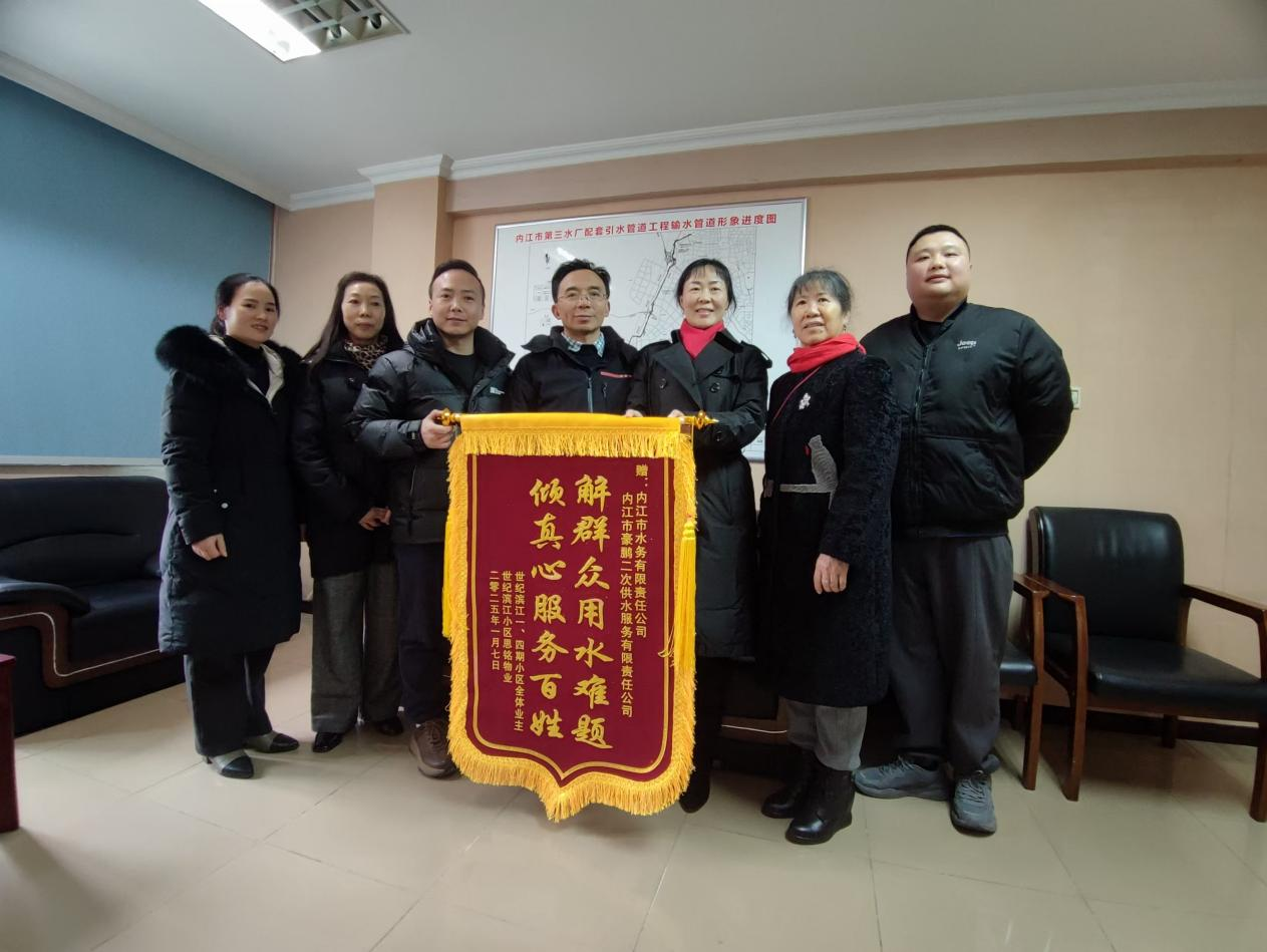 豪鵬二供公司黨支部積極踐行便民舉措、主動作為的舉動,贏得了世紀(jì)濱江業(yè)委會及物業(yè)的高度認(rèn)可,并送錦旗向豪鵬二供公司表達(dá)誠摯的感謝與敬意。